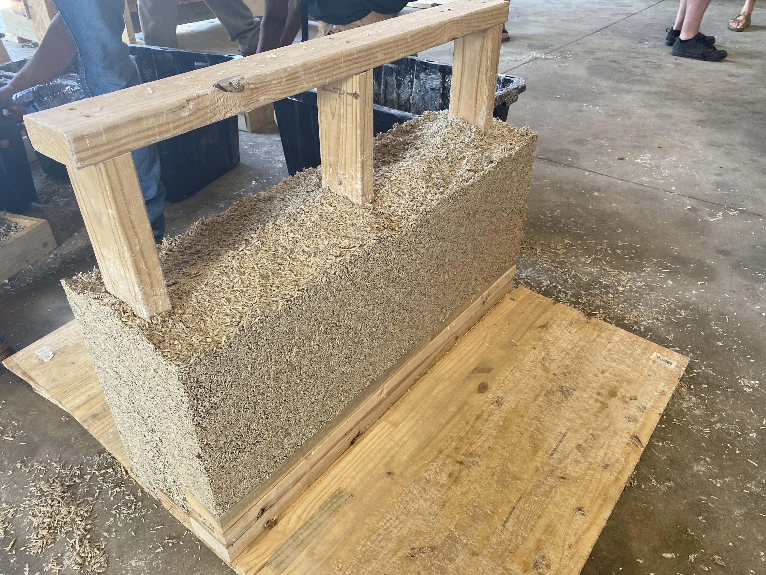 - Wall made from 2×4 frame and RevoCrete packed material
